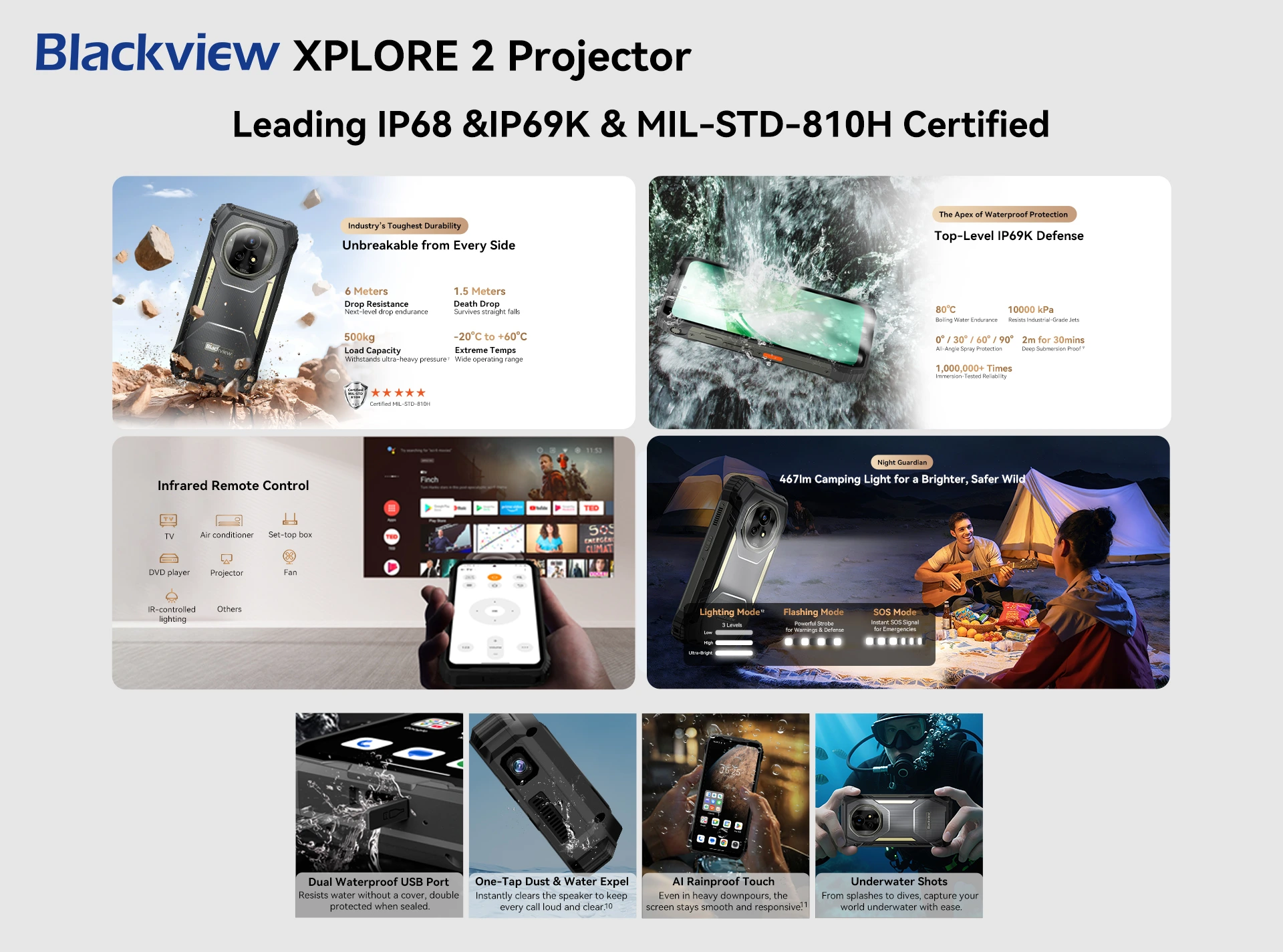 Imagine a smartphone that remains clear and true to color even under intense sunlight, thanks to its HDR display, operates stably in stormy weather, and transforms into a 100-inch giant projection screen. Wouldn't you redefine what a “rugged flagship” truly means? After 13 years of expertise in the rugged device industry, Blackview is about to launch two flagship models—the Blackview XPLORE 2 Projector and Blackview XPLORE 2, both designed for extreme environments.