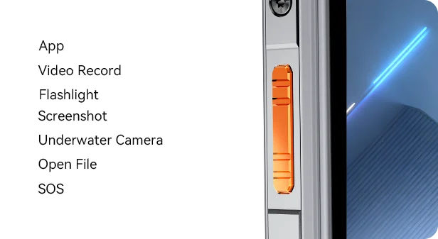 Customize the side key to access your favorite functions with a single, double, or long press — from launching the underwater camera and turning on the flashlight to sending an SOS alert, all at your fingertips.