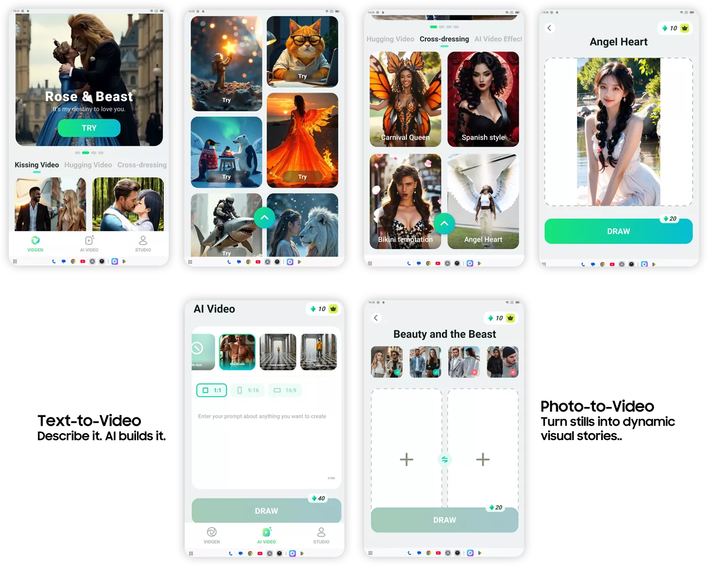 From text-to-video to turning photos into motion, VidGen is your creative playground. Add fun effects like Muscle Man, Rotation, or Lens Stretch, and make every video uniquely yours.