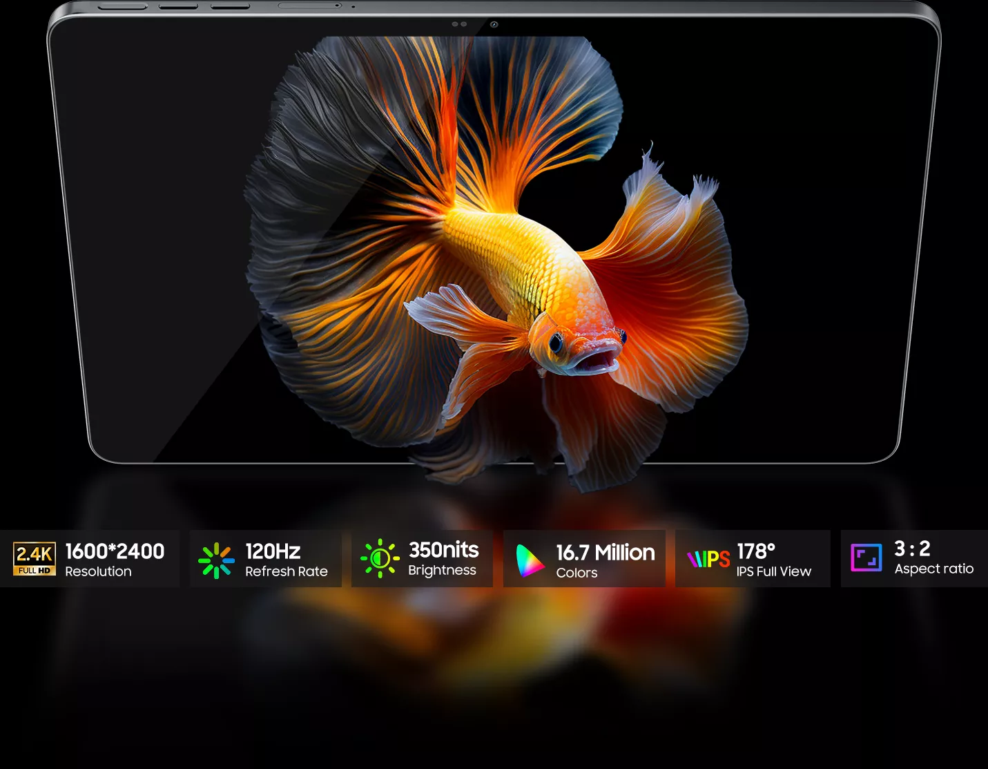 | Display | 12.2" QFHD+ IPS, 174.8 PPI, 350 nits Brightness, 120Hz Refresh Rate |