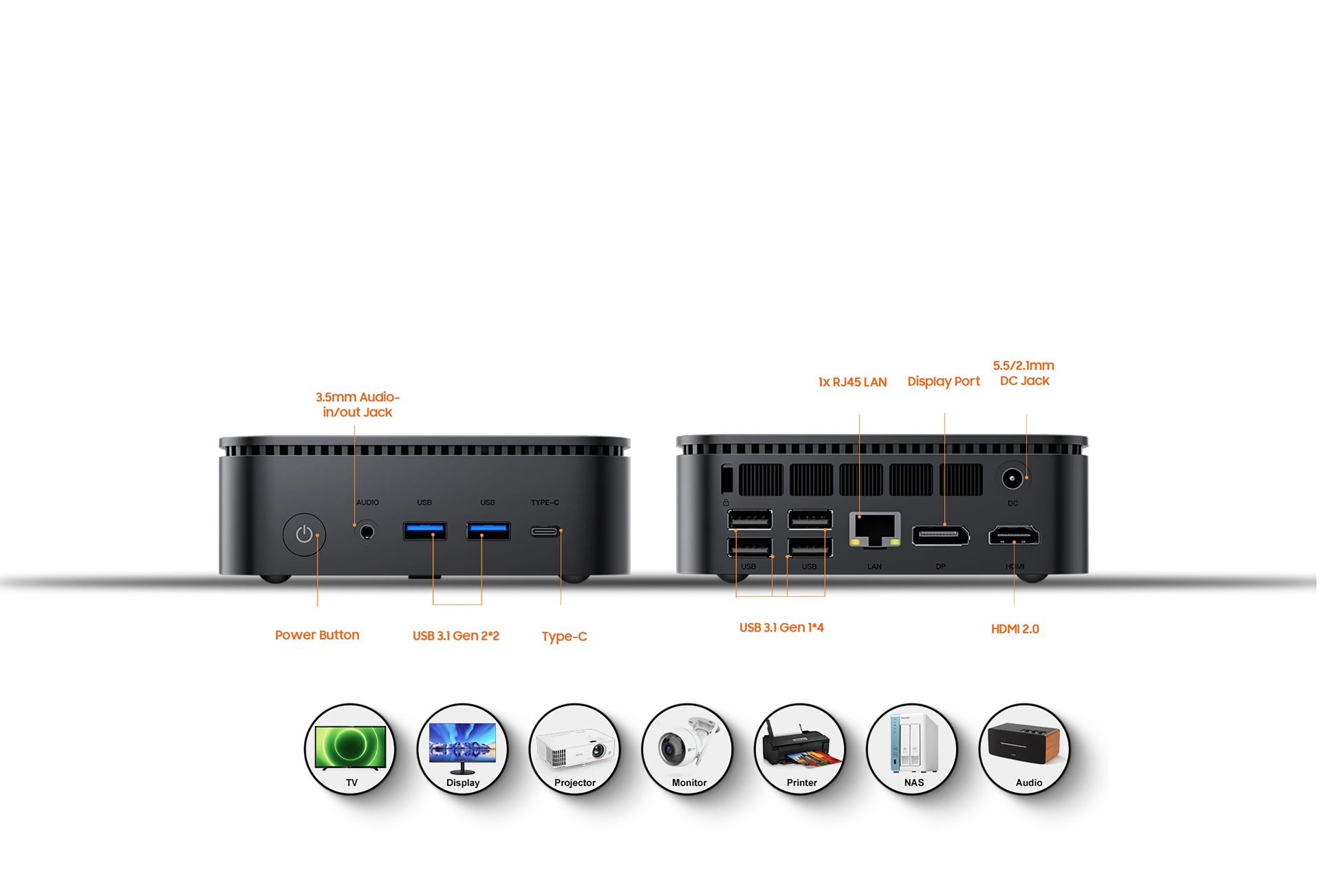Max out your multitasking with Blackview MP100 Pro. Its HDMI,DP, and USB-C ports enable a seamless 4K triple-monitor support for peak productivity and top-notch entertainment.