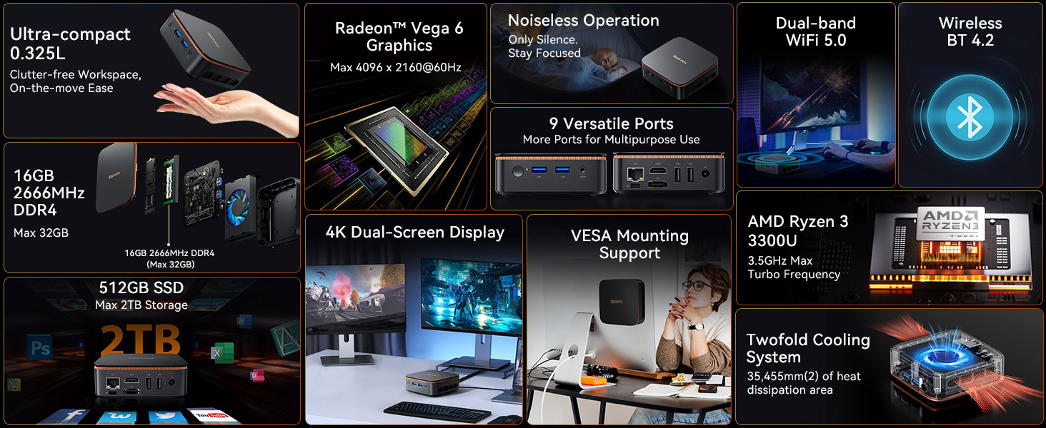 | I/O | 2x USB 3.0 2x USB 2.0 HDMI2.0 RJ45 LAN DP 1x 3.5mm Audio-in/out Jack1x Power Button |
