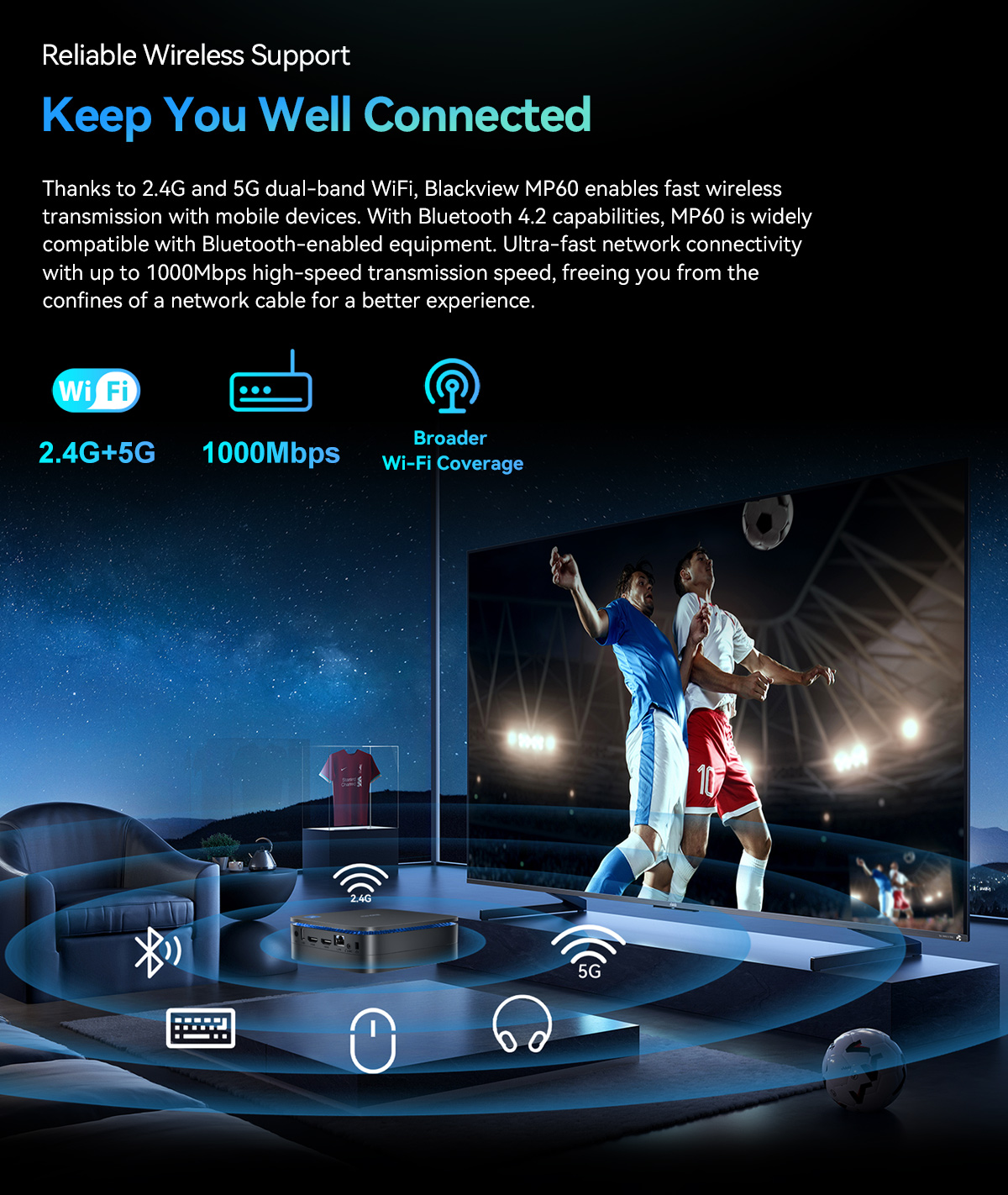Wireless Type | Dual band 2.4G + 5G WiFi (802.11 a/b/g/n/ac) Bluetooth 4.2 integrated |