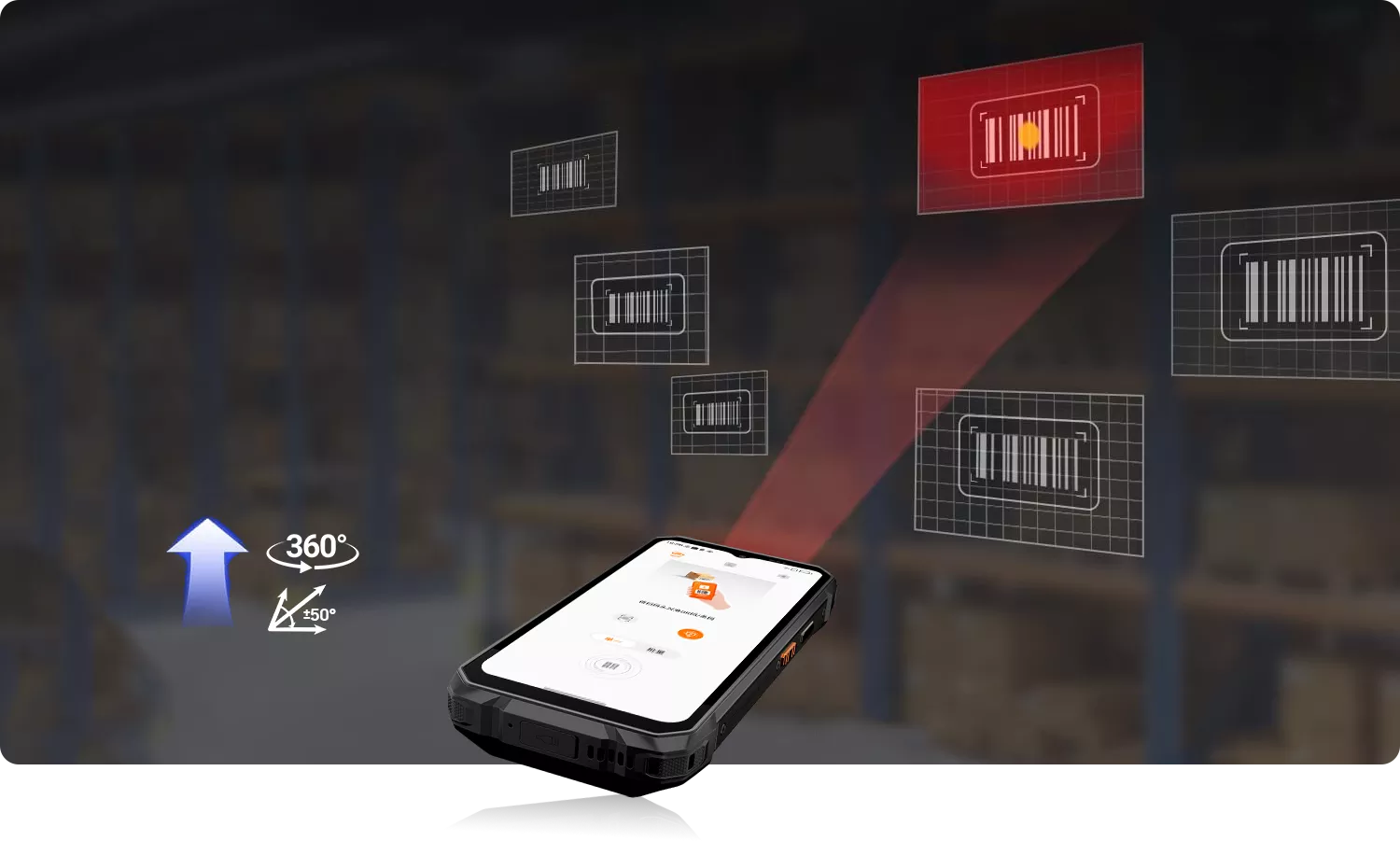 for Maximum Convenience With 360° rotation, ±50° tilt, and ±50° deflection, ROCK 1 Pro scans barcodes from any angle. No need to adjust the barcode’s position – just point and scan!